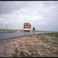 Roman road before Dana; bus on Roman road across modern road