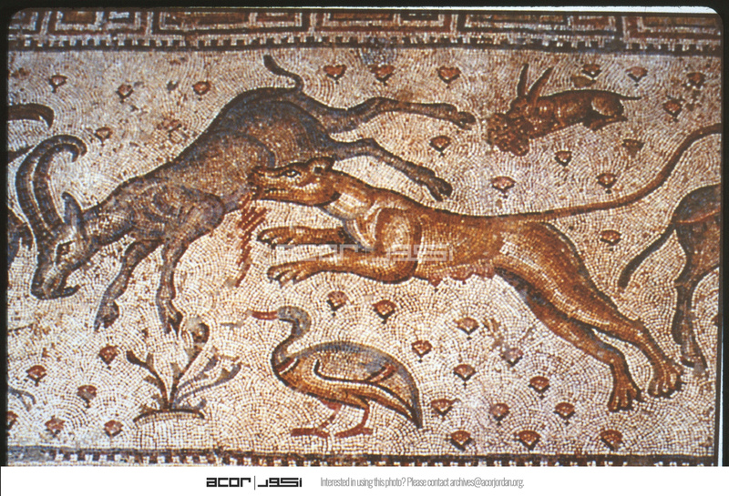 - Detail of mosaic of tiger attacking a goat