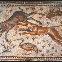 Detail of mosaic of tiger attacking a goat