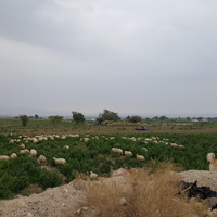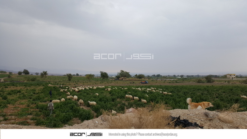 Jordan. Ghawr as Safi, agricultural fields near Khirbet Sheik Isa, local residents, goats, dog