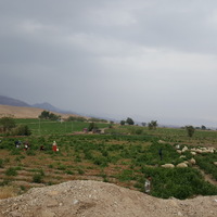 Jordan. Ghawr as Safi, agricultural fields near Khirbet Sheik Isa, local residents, goats