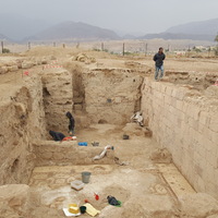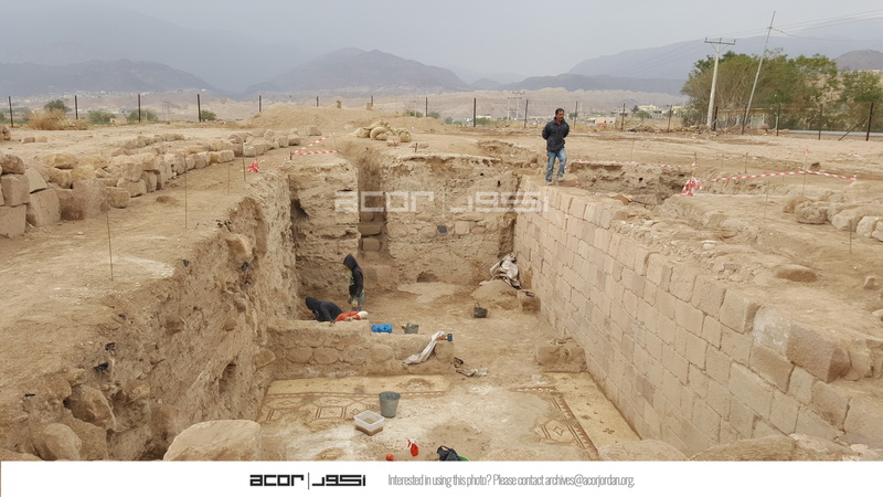 - Jordan. Ghawr as Safi, SCHEP team uncovering mosaics at Byzantine church at Khirbet Sheik Isa, SCHEP team member