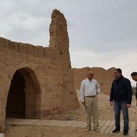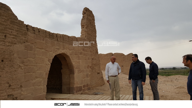 Jordan. Ghawr as Safi, Konstantinos Politis and SCHEP team in front of entrance to sugar factory (Masna’ as-Sukkar)