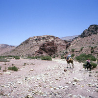 Jordan. Petra, helicopter flight with Jane Taylor down to Wadi Sabra, Jane Taylor and Bdoul guide