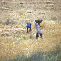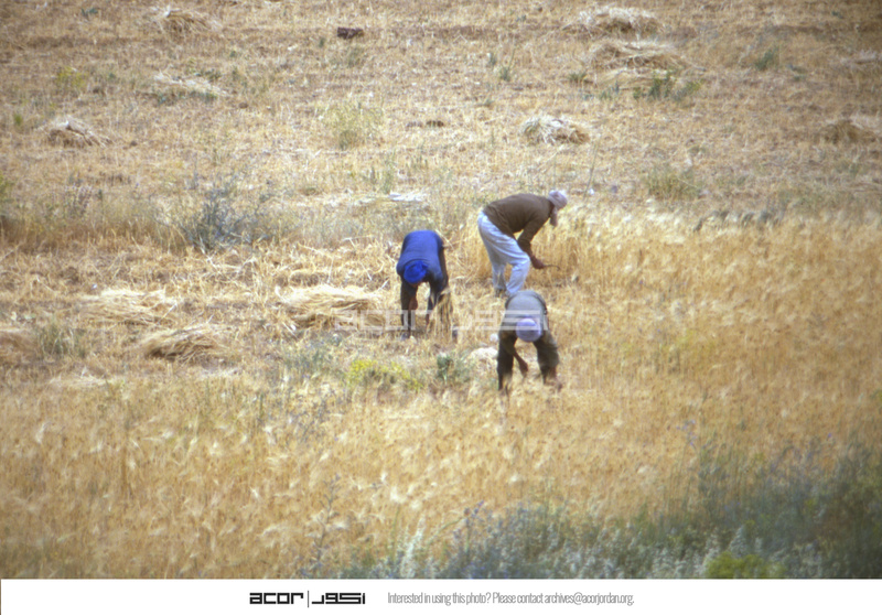 Jordan. Amman, sickle harvesting wheat, near ACOR