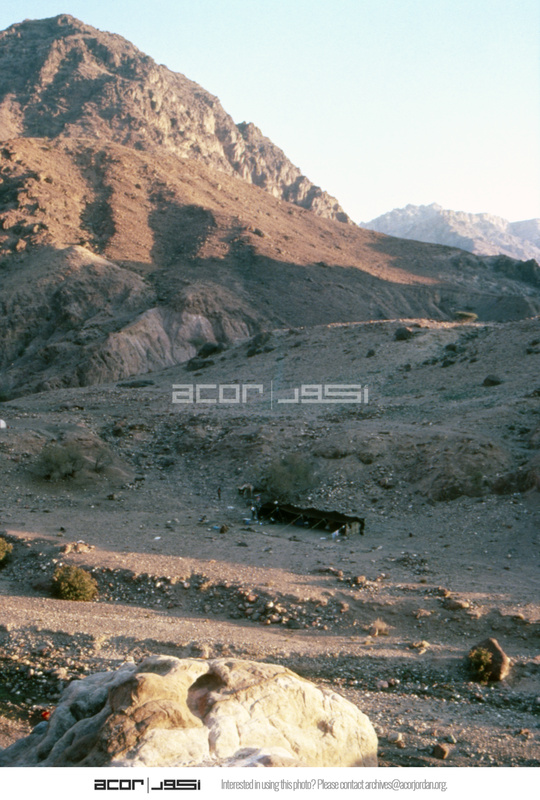 Jordan. Petra, Bedouin tent erected in valley