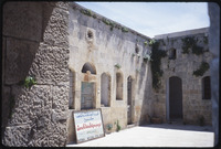 منظر خارجي لمكتب مع لافتة المرحلة الأولى من مشروع ترميم قلعة الحصن