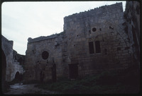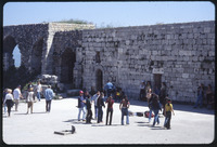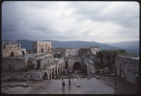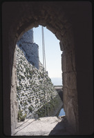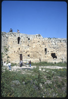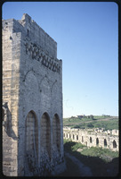 منظر طبيعي يظهر في مقدمته الأسوار والأبراج الجنوبية الشرقية من قلعة الحصن