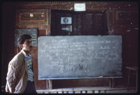 قاعة صفية في بيت غزالة يظهر فيها رجل وسبورة مكتوب عليها نص أرمني