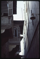 زقاق ضيق يظهر فيه مشربيات في حي الجديدة