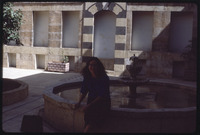 بربرا أ. بورتر تجلس على حافة نافورة الماء "البحرة" في بيت أجقباش