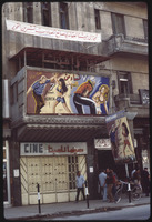 سينما راميتا (الأهرام سابقًا) في حلب، يظهر في الصورة بوستر فيلم سبعة نساء من السماء