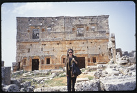 صورة لبربرا أ. بورتر أمام أنقاض منزل من طابقين في موقع سرجيلا الأثري