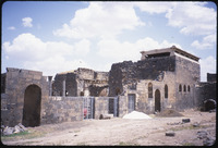 كاتدرائية في بصرى في مقدمتها أجزاء محفورة