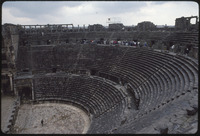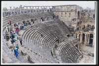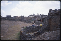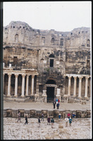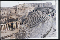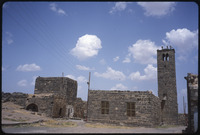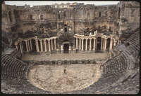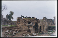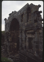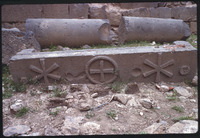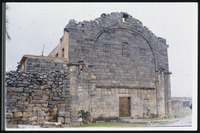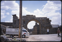 منظر من خلال البوابة يظهر داخلها حجر منقوش باللغة العربية