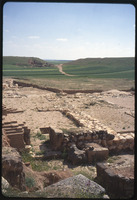 منظر لمدينة إبلا الأثرية ومزارعين على التلة