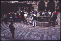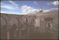 فناء الجامع الأموي تظهر فيه مئذنة العروس وقبة الساعات