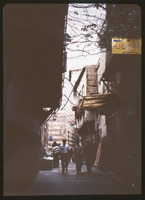 منظر زقاق تظهر فيه مباني قديمة ومشربية