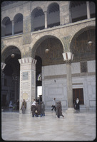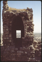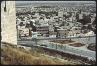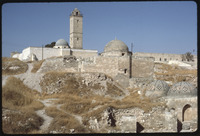 منظر من سطح قلعة حلب يظهر فيه المسجد الصغير( مقام النبي ابراهيم السفلي) ومدخل إلى قاعة العرش