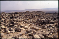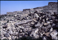 بقايا معمارية متراكمة حول الطرف الغربي للكنيسة ، الرصيفة - الكرك