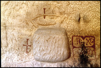 بترا - الدير ، تفاصيل لرسمة الصليب على الجدار