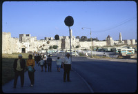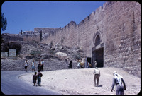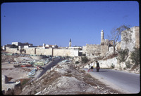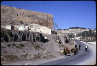 سور مدينة القدس، الزاوية الجنوبية الشرقية، مع ظهور الرعاة والقطيع بالطريق