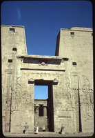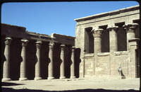 منظر لمعبد كوم امبو, الفناء الأمامي لمعبد إدفو مع تمثال حورس