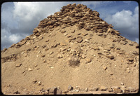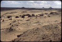 بقايا معمارية وآثرية للقبور مع ظهور هرم سنفرو المائل واهرامات دهشور في الخلف