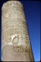 تفاصيل النقوش والكتابات الهيروغليفية على عمود بفناء معبد كوم أمب