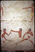 نقش ملون في مقبرة في سقارة تصور بقرة تُذبح