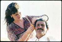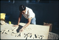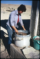 اللجون- موسم حفريات 1985، عامل يقوم بحلاقة شعره