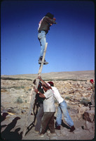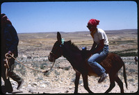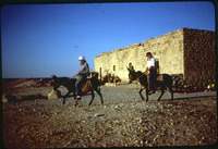 اللجون- موسم حفريات 1980، أحد أعضاء الفريق يركب حمارًا