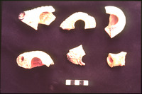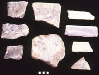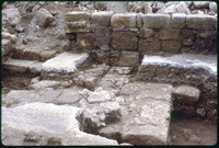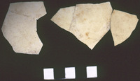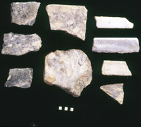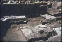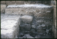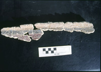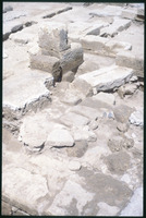 حفريات الكنيسة السفلية في القويسمة - قطع مكسرة من لوح من الحجر الجيري