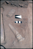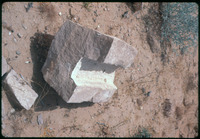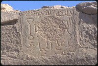 مشروع أعمال التنقيب الأثري في موقع الحميمة - قطعة حجرية مكسورة عليها نقش على شكل صليب