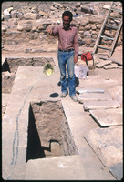 مشروع أعمال التنقيب الأثري في موقع الحميمة - روبرت شيك يلقي القبعة في القبر