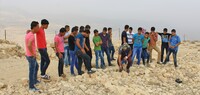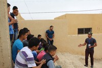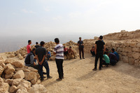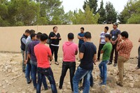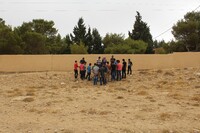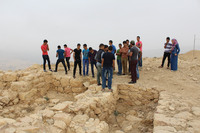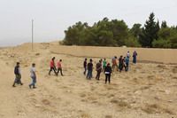 Jordan. Busayra, school group archaeological site visit and pottery activity