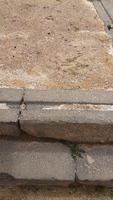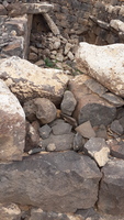 Jordan. Umm al Jimal, altar screen inside Cathedral, with grooves for a balustrade or partition and square holes for posts, the square are of the stone border which juts out on the upper right is the entrance