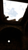 Jordan. Umm al Jimal, square-shaped roof opening of cross-shaped room of Praetorium, straight lines of ceiling moldings