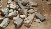 Jordan. Umm al Jimal, collection of stones made during the process of conserving the Gate of Commodus