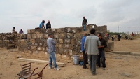 Jordan. Umm al Jimal, workers working on the restoration of Commodus Gate