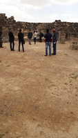 Jordan. Umm al Jimal, Bert de Vries, ACOR director Barbara Porter, Huda Kilani of USAID SCHEP, and local workers working on the restoration of Commodus Gate