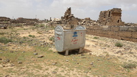Jordan. Umm al Jimal, garbage bin, outside Praetorium