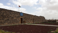 Jordan. Umm al Jimal, entrance and front garden of Interpretive and Hospitality Center, which houses a hospitality center and a museum