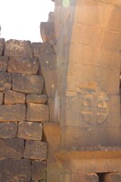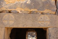 Jordan. Umm al Jimal, cross on the West Church and detail of lintel