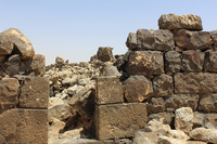 Jordan. Umm al Jimal, Cathedral, slabs in the middle are the foundation where arches start from