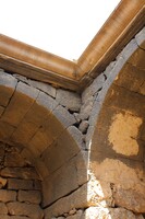 Jordan. Umm al Jimal, the West Church, detail of arch with cross