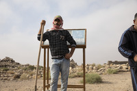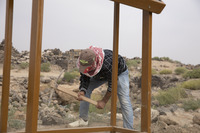 Jordan. Umm al Jimal, worker with shovel during installation of the Quarry Reservoir interpretive sign