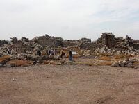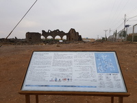 Jordan. Umm al Jimal, interpretive sign for House 103 and the Double Church