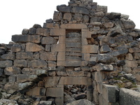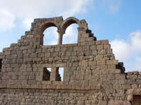 Jordan. Umm al Jimal, courtyard of a house in northern section of site, door filled in during remodeling in the 1930s