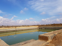 Jordan. Umm al Jimal, Reservoir 12 (Nabataean style reservoir), featuring arches used to support a roof